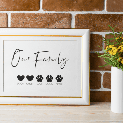Our Family Personalised Pets Names Animal Wall Decor Simple Print