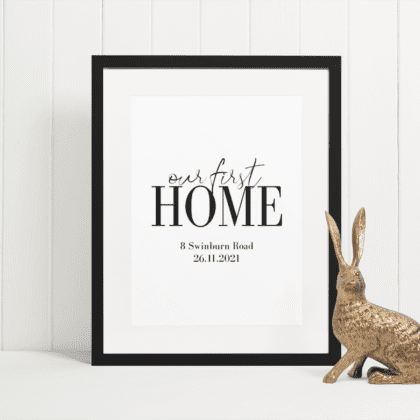 Our First Home Personalised House Number & Street Simple Wall Decor Print