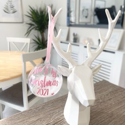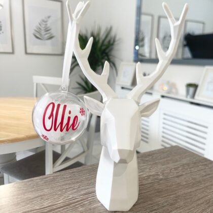 Christmas At The Surname Personalised Clear Feather Christmas Tree Hanging Decoration Bauble