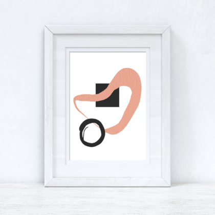 Peach Pink & Black Abstract 2 Colour Shapes Home Wall Decor Print
