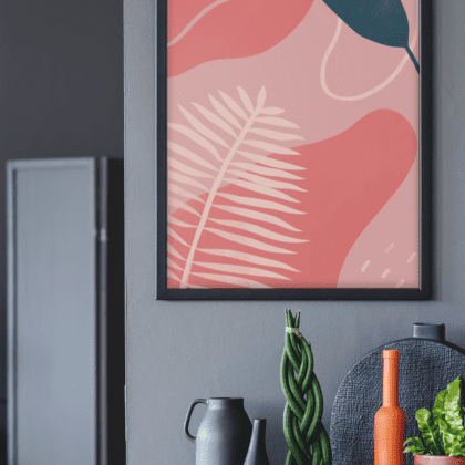 Peach Pink & Black Abstract 3 Colour Shapes Home Wall Decor Print